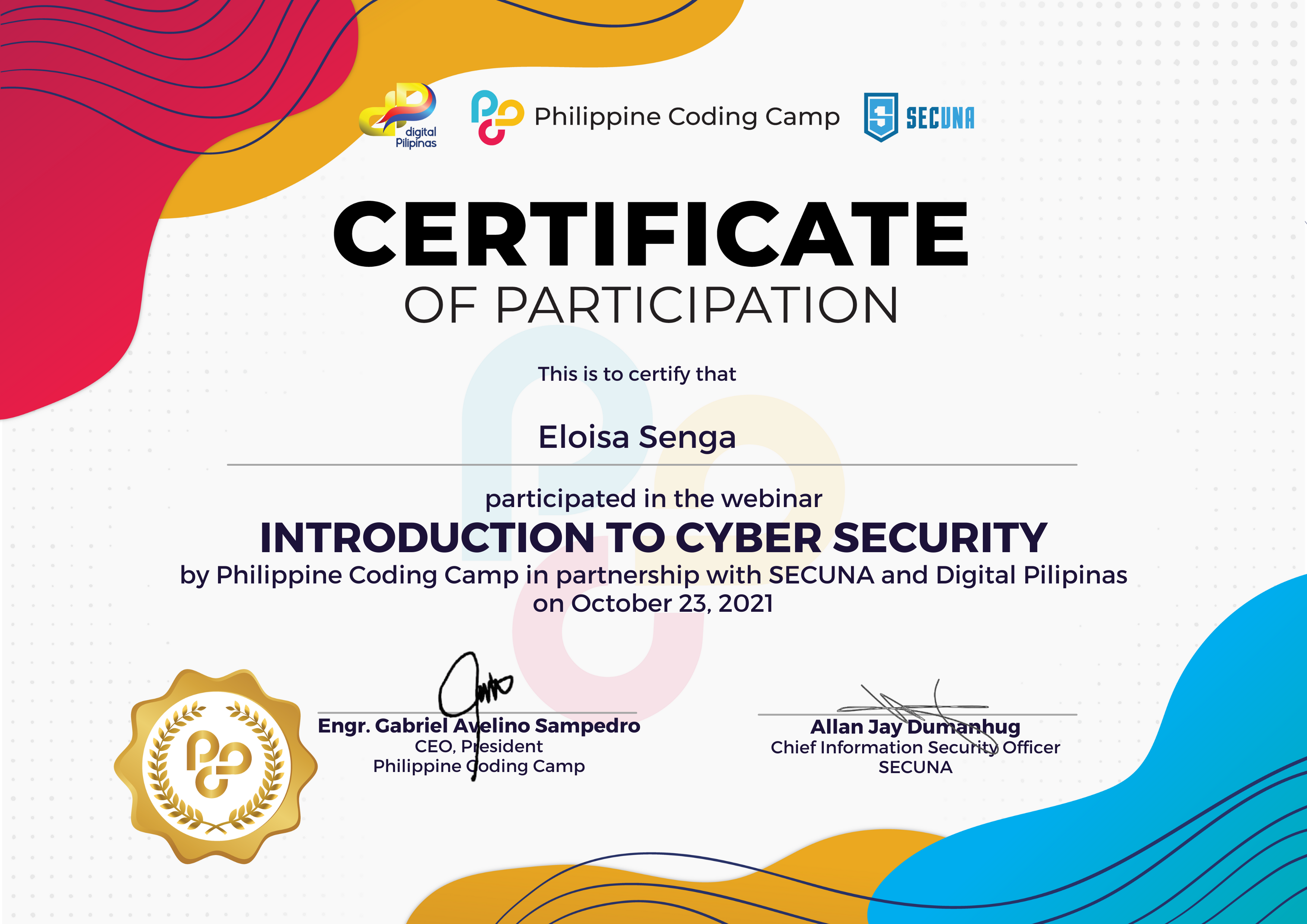 Led by Philippine Coding Camp, Secuna, and Digital Pilipinas entitled, “Introduction to Cybersecurity” webinar last October 23, 2021.