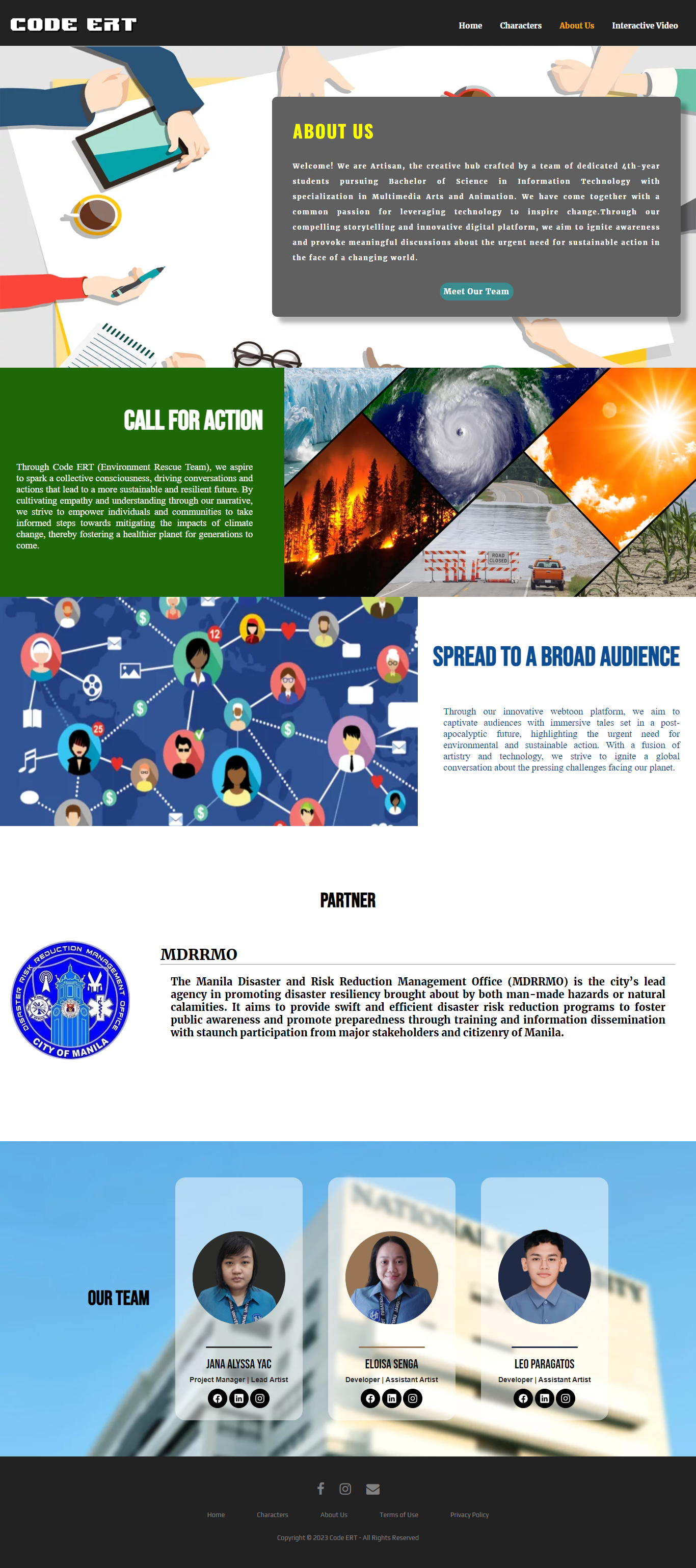 With a group of 3 members, we were able to passed our final capstone defense with a verdict of passed with major revisions. I am proud to be part of this project, as I contributed meaningfully to the group. I am the Web Developer and Assistant Artist, my role gave a significant contibutions to the project and I am proud that I developed majority of the website. This project will be given and utilized by our client, MDRRMO (Manila Disaster Risk Reduction Management Office). Special thanks to my team, Ms. Jana Alyssa Yac and Mr. Leo Paragatos.